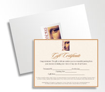 Gift certificates are a great idea. When you order a gift certificate we send you a beautiful certificate printed on parchment textured paper and enclosed in a silver folder with a brochure. We'll work with the recipient to help them create a wonderful painting from any photo or photos they choose.